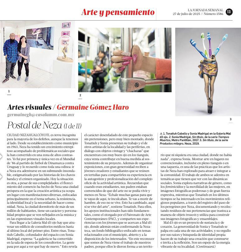 Galería Mal d3 ojo fue creada en 2015 y se encuentra ubicada en Ciudad Neza. Tiene como objetivo la exhibición, difusión y venta de obra de artistxs de este municipio y otras periferias.